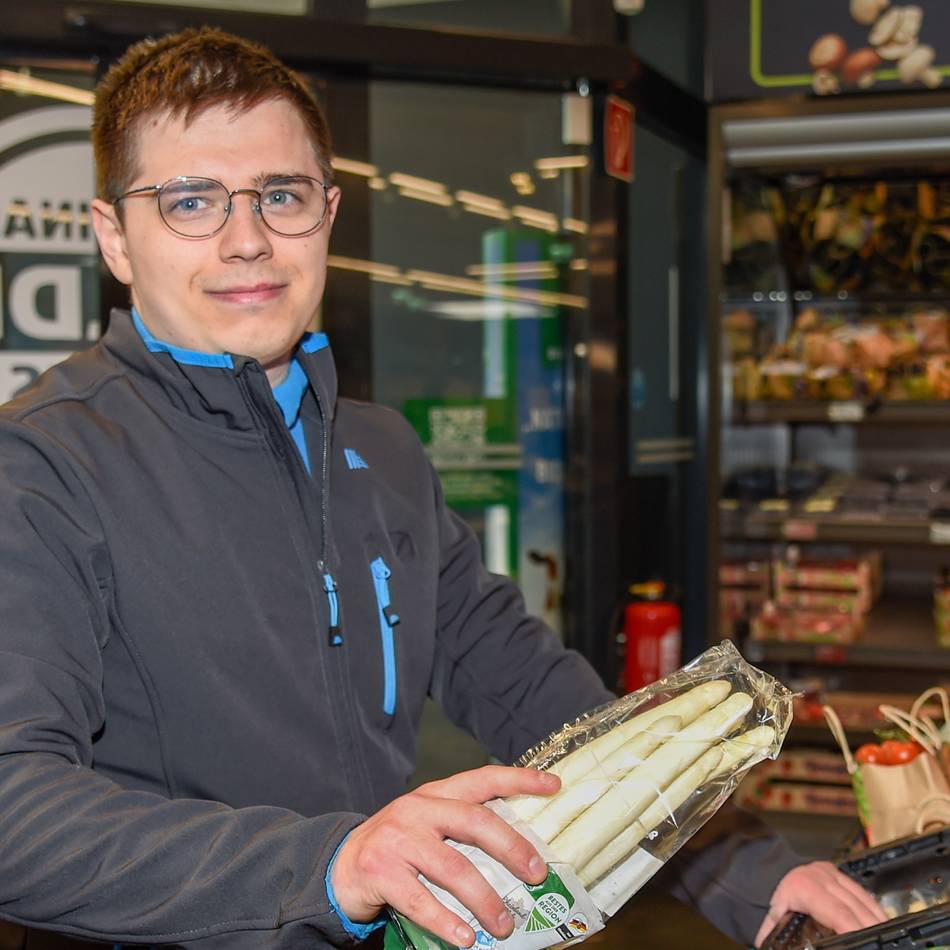 „Ich beschäftige mich eher mit den Menschen, denen ich täglich begegne, statt hauptsächlich mit Lebensmitteln. Dies finde ich sehr interessant“, fährt der 25-jährige fort und erinnert sich ebenfalls an einige eigenartige Erfahrungen aus seiner Ausbildung: „Meine liebsten Geschichten sind jene über zwei ungewöhnliche Kundenanfragen. Die eine Frage betraf das Vegan-Sein des Thunfisches in der Dose. Die andere bezog sich darauf, welche Tierspezies für die Milch bei Aldi Süd verantwortlich ist – ob es nun die Kuh oder doch das Huhn wäre.“